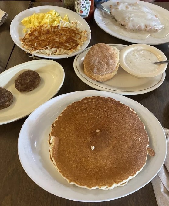 The menu leans heavy into classic American diner fare, but it doesn’t feel copied from a freezer catalog. I once watched the cook roll out biscuit dough behind the counter while chatting with a regular about the Cowboys game. That kind of hands-on process shows in the food. Their gravy isn’t the thin, overly salty stuff; it’s thick, peppery, and made in small batches. According to the Texas Restaurant Association, scratch cooking in independent diners has dropped below 30% statewide, mostly because of rising food costs, so seeing a place still doing it the hard way is rare and honestly impressive.