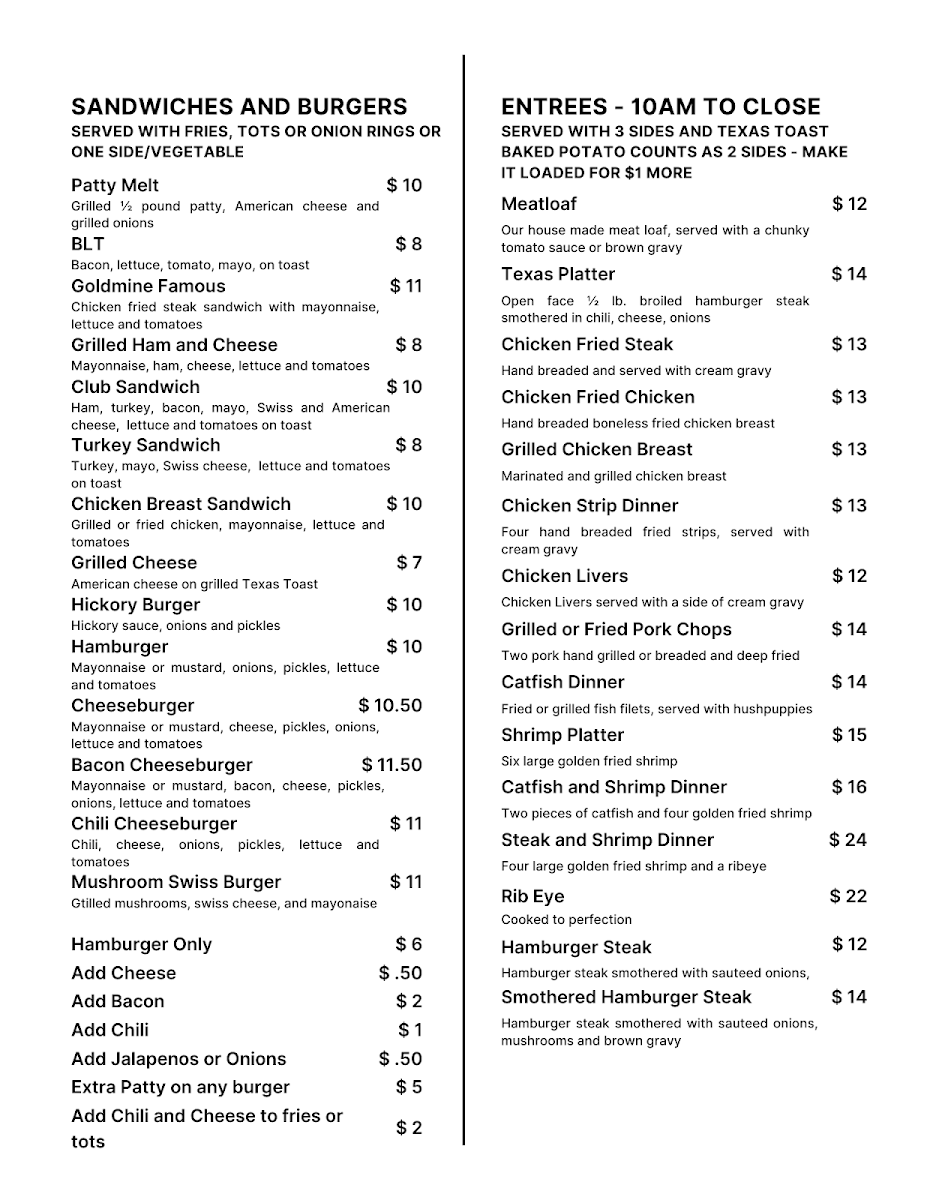 At Goldmine Restaurant, located at 3127 S First St, Garland, TX 75041, you'll find a menu that’s packed with flavors and fresh ingredients, designed to satisfy every craving. From hearty comfort food to exciting new twists on classics, there's something here for everyone. Whether you’re in the mood for a juicy steak, crispy fried chicken, or a unique vegetarian dish, the options are endless. Each dish is carefully crafted to bring out the best in every ingredient, ensuring a mouthwatering experience from start to finish.